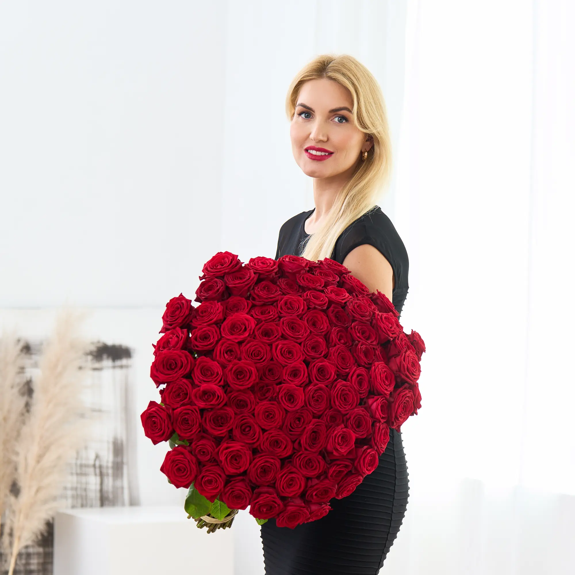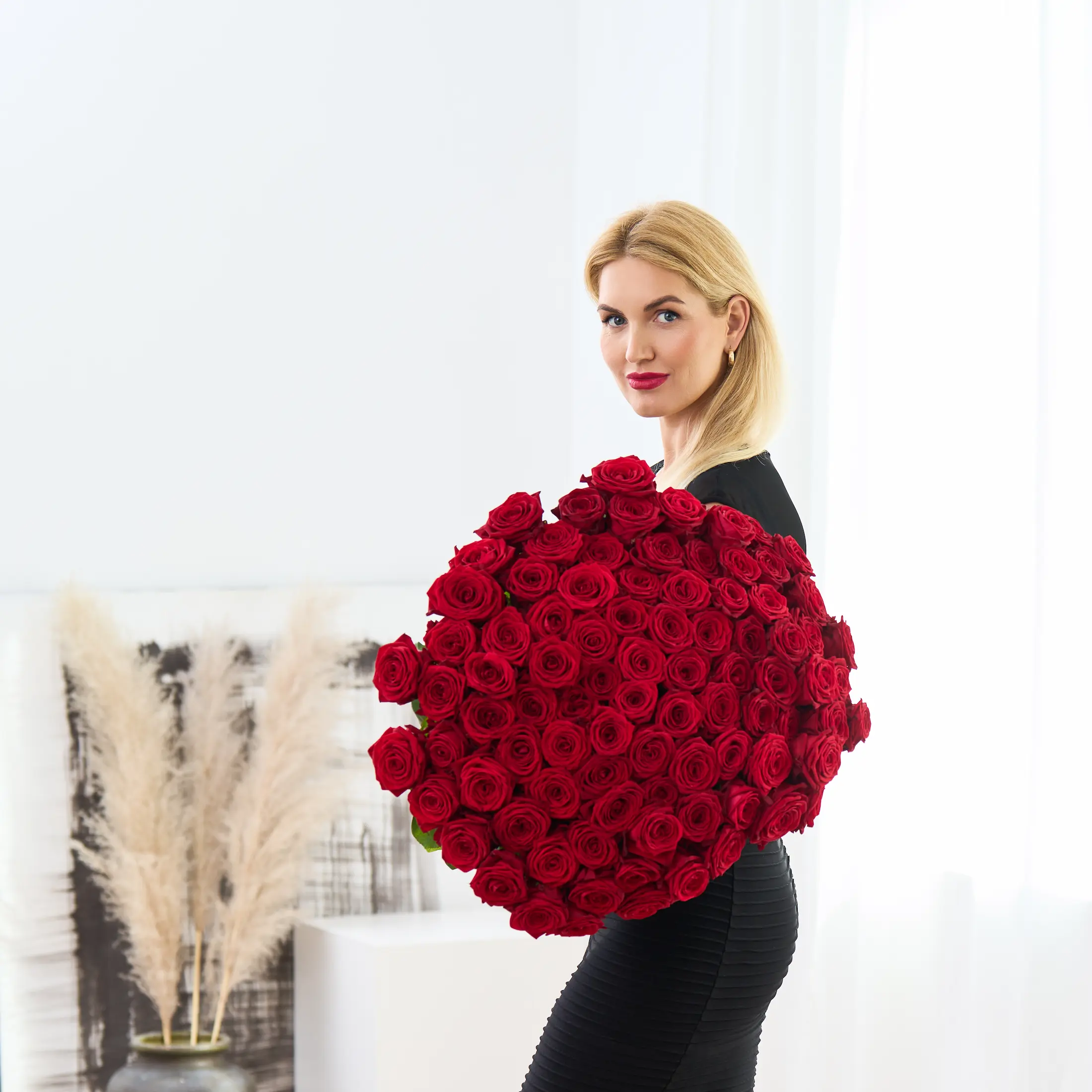 101 raudona rožė – sukurta iš premium „Red Naomi“ raudonų rožių. Tai karališkas pasirinkimas, pabrėžiantis jausmų gilumą ir paliekantis įsimintiną įspūdį.